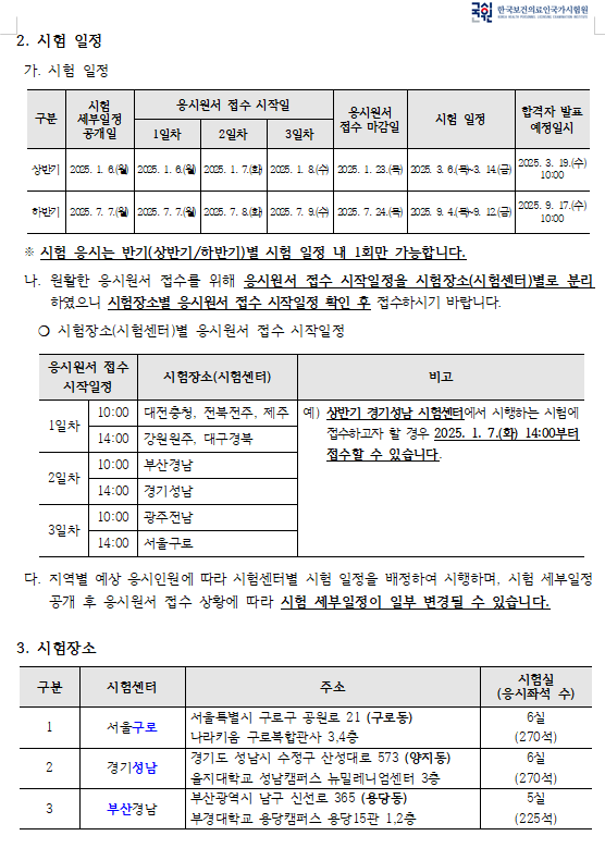 시험일자: 상반기: 2025. 3. 6.(목)~3.14.(금)